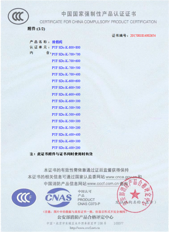 產品全通過國家消防檢測中心檢測,獲得CCC證書